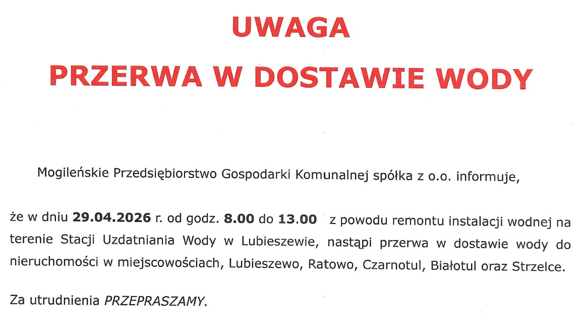 Przerwa w dostawie wody – UW Lubieszewo